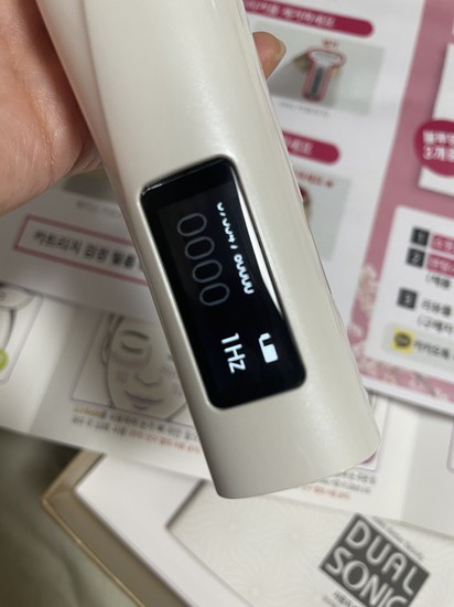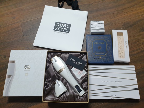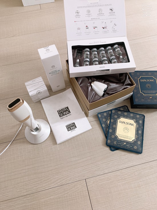 어제 배송받고 오늘 듀얼소닉 두근두근 개봉박두 했습니당~^^일단 페이스 카트리지용, 아이 카트리지용 이렇게 두개가 따로 있구용~앰플이랑 마스크팩 탄력크림까지 주는줄은 몰랐는데 이게 패키지 구성이라 다 주나봅니당 사용설명서도 잘되어있구 얼굴에 어떻게 조사하면서 쏘는지 설명서도 잘되어있어용~설명서대로 보고 따라하면서 연습삼아 해봤는데 간단하네용 저는 피부가 얇아 3단계로 했는데도 살짝 따꼼?했습니당~관리끝나구 바로 마스크팩 붙이고나서 그이후 앰플바르고 크림까지 바르고나니 피부가 뭔가 탱탱하면서 쫀쫀해지면서 탄력이 생긴느낌이네용 아직 일회사용 밖에 안해봤지만 이주씩 1회 꾸준히 사용해보겠습니당~비싼가격만큼 효과가 만빵이였음 좋겠네용 제품도 엄청 고급져보이고 이뻐용~꾸준히 오래 써서 광고모델이신 유진님처럼 피부요정이 되보겠습니당~^^
