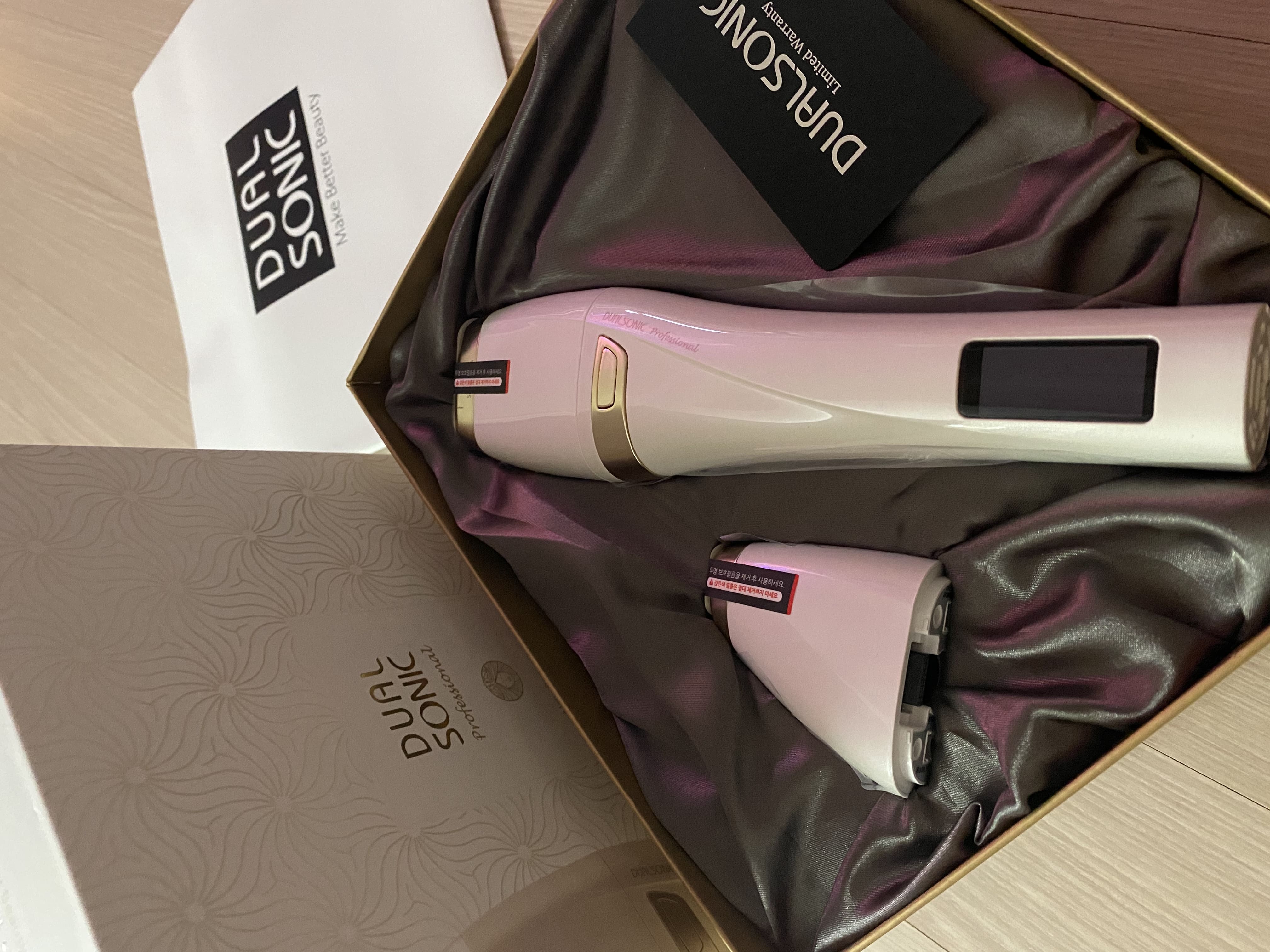 요즘 듀얼소닉이 인기가 많은거 같아서 다른 제품들이랑 같이 알아보고 비교를 해봤는데 듀얼소닉이 좀더 깊이 조사도 가능하다고 하고 효과를 많이 보는것 같아서 큰맘먹고 결제했어요 .이번주에 받아서 받자마자 페이스 300샷 해봤어요 . 저는 평소에 슈링x 꾸준히 받아왔는데 슈링x랑 거의 비슷한 효과가 있었어요.얼굴전체적으로 했지만 제가 제일 신경쓰이는 부분은 턱라인 이중턱이에요 일단 이중턱에 조사 가능해서 좋았어요(타제품에선 이중턱에 사용을 자제해달라고 하더라구요) 진짜 효과봤구요 좀더 능숙해지면 더 효과를 볼수 있겠죠?? 통증은 병원에서 받는 통증의 5분의1 정도 인거같아요 워낙 아픔도 잘참긴해서요전 5단으로 하구요 듀얼모드로 했어요 눈쪽 볼쪽은 조금 약하게 했어요 3.5였나그쪽은 조사할때 4.5나 듀얼모드로 하게되면살이 빠질수도 있다고 들었어용. 턱쪽은 무조건 4.5나듀얼!!!!!!!! ㅎㅎㅎㅎ 열심히해서 브이라인 탄력있는 얼굴이 되겠습니당 ㅎ 감사합니다